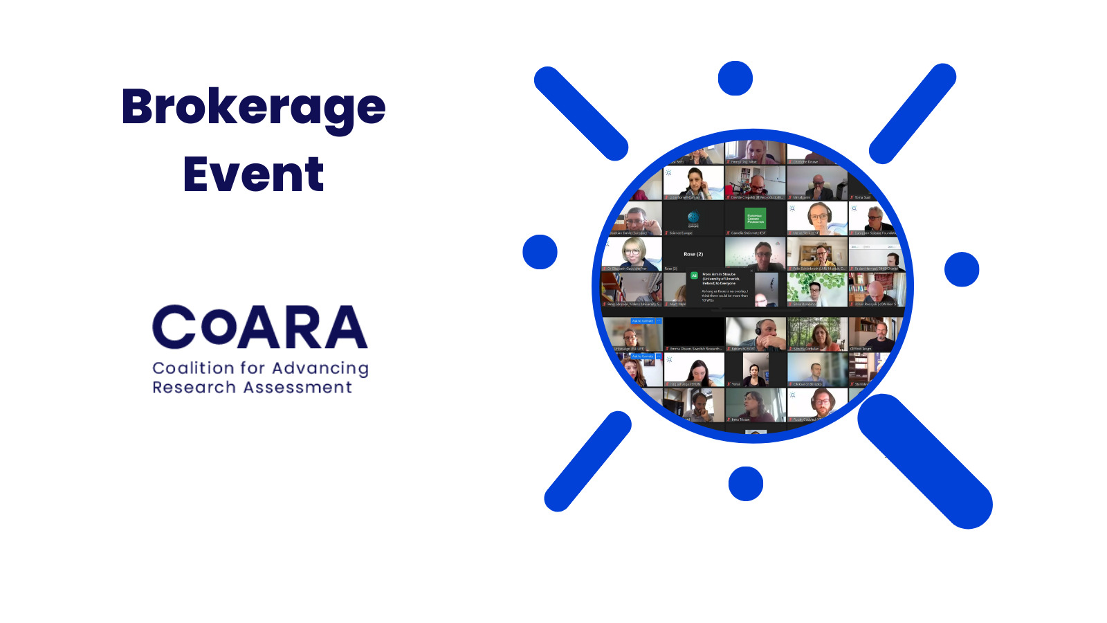 The Coalition for Advancing Research Assessment (CoARA) hosts the next Brokerage Event on October 16th (14:00 – 16:00 CEST, Online). The event serves as platform to present to and discuss among the CoARA Community Expressions of Interest submitted in the second round of the 2023 Call for Working Group Proposals.